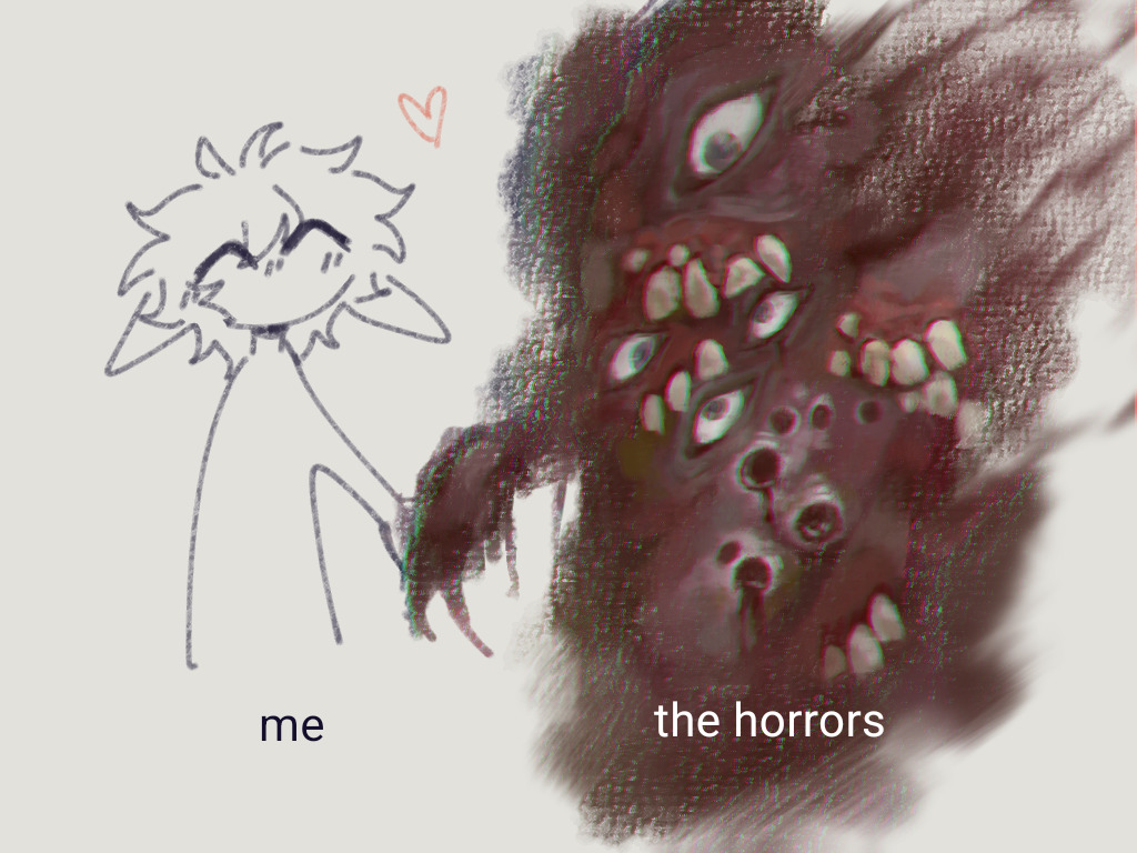 but i am very small, and very scared. i dont post on social media often because i don't want to become someone i am not. i dont want my own community thats scary... i just want to love people through my art... normalize playing dead when you get scared . i should be allowed to die for a second so everything leaves me alone